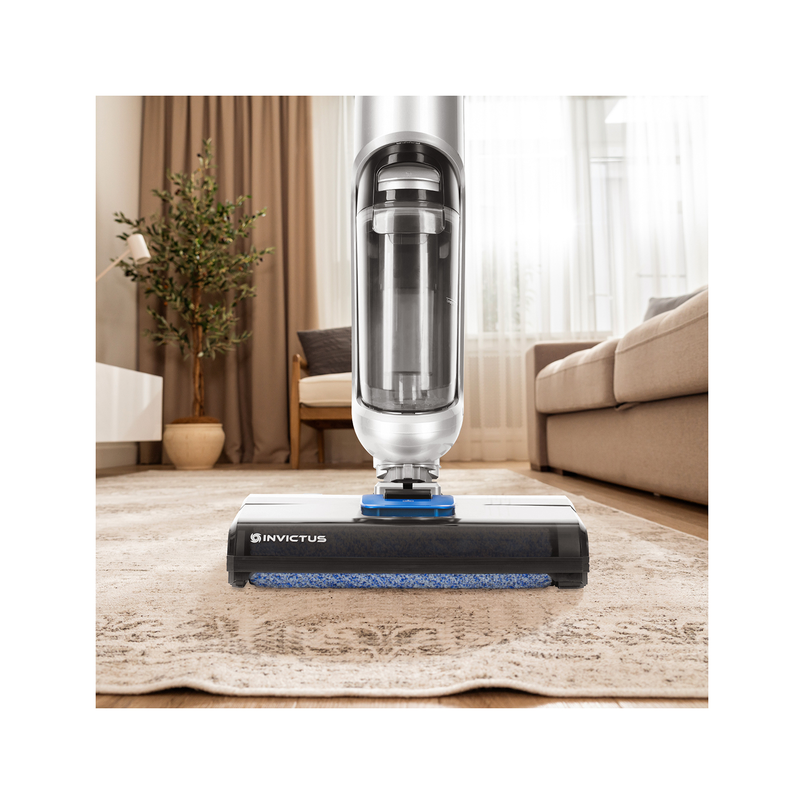 Manchmal sprengt die mühevolle Reinigung sogar den Zeitrahmen, wenn sich spontan Besuch ankündigt. Lassen Sie sich von solchen Situationen in Zukunft nicht mehr stressen und verkürzen Sie die Reinigung um ein Vielfaches! Mit dem INVICTUS WD7 sind auch plötzlich anfallende Reinigungsaktionen keine große Sache mehr. Innerhalb kürzester Zeit saugen, wischen, trocknen und polieren Sie alle möglichen Arten von Böden und Oberflächen: Reinigen Sie Vinyl, versiegelte Holzböden, Laminat, Kurzflor-Teppiche, Marmor und vieles mehr ganz einfach mit nur einem Gerät. Der hocheffiziente Nass- und Trockensauger von Genius entfernt dabei mühelos trockenen und nassen Schmutz. Und durch die im 17-teiligen Deluxe-Set mitgelieferten INVICTUS Reinigungskonzentrate erstrahlen Ihre Böden nach der Reinigung zusätzlich in neuem Glanz. Die Tage sind vorbei, an denen Sie vor hartnäckigen und klebrigen Verschmutzungen zurückschrecken mussten. Der INVICTUS WD7 sorgt mit seinem hochmodernen BLDC-Motor für eine kraftvolle Reinigung, die streifenfrei saubere Böden hervorbringt – und das bei einer Zeitersparnis von mindestens 50 %! So einfach und schnell war die Reinigung von Böden noch nie.